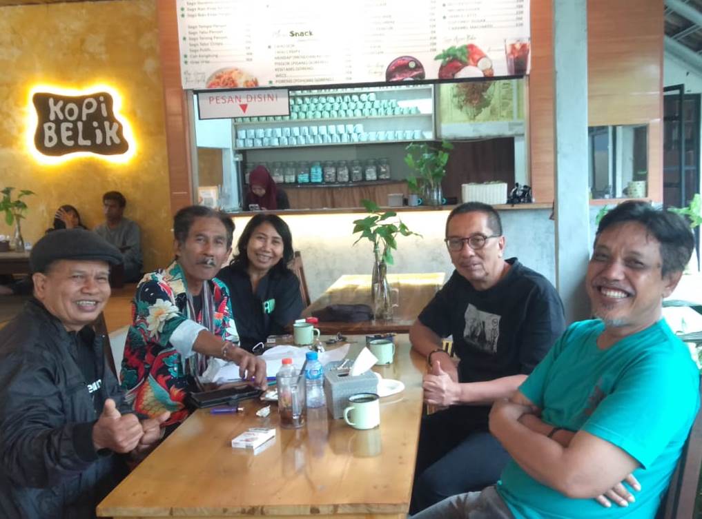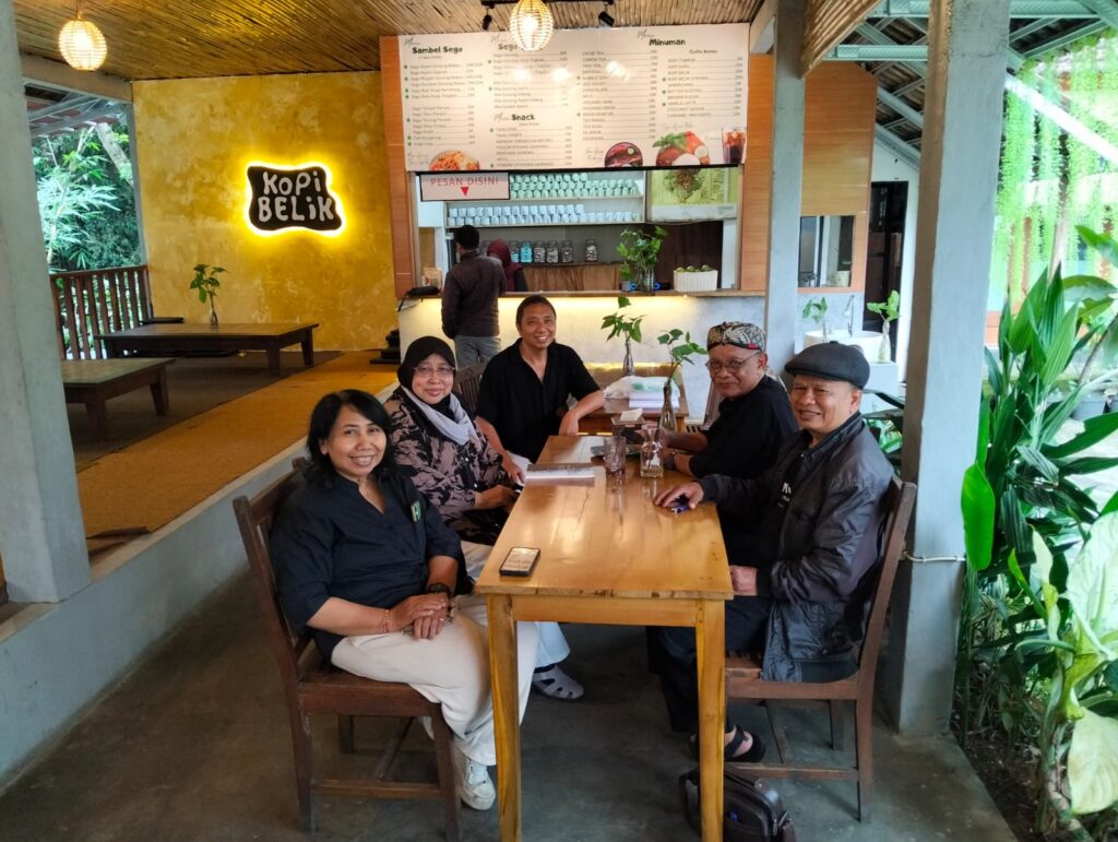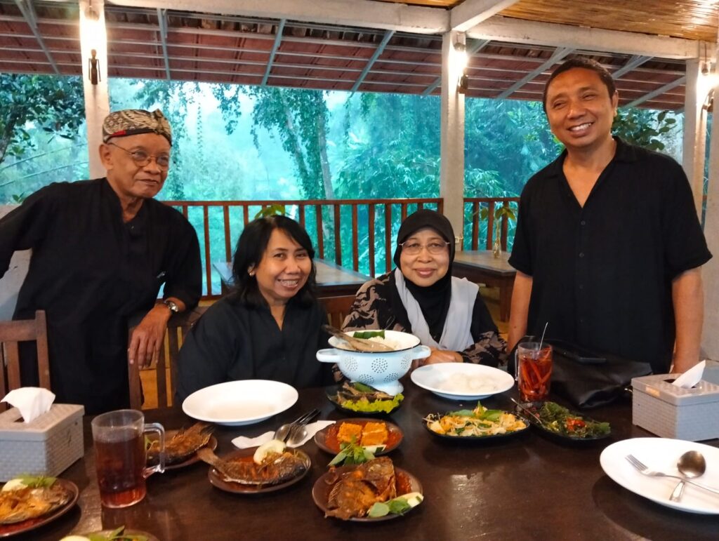 Ya sudah, kami hanya ngobrol bersama Mas Dwi Cahyono, pemilik museum Panji, dan Mbak Ratna Arya. Tidak lama kemudian datanglah Pak Lulut, kolektor naskah kuno. Tiba-tiba hujan deras. Sedemikian derasnya sampai tampias ke areal Kopo Belik, tempat kami berbincang. Sebuah pesan singkat masuk, “Posisi sebenarnya sudah cukup dekat. Tp terjebak hujan deras. Saya ngiyup,” tulis jurnalis Neddy, yang juga keponakan Wardiman Djojonegoro.