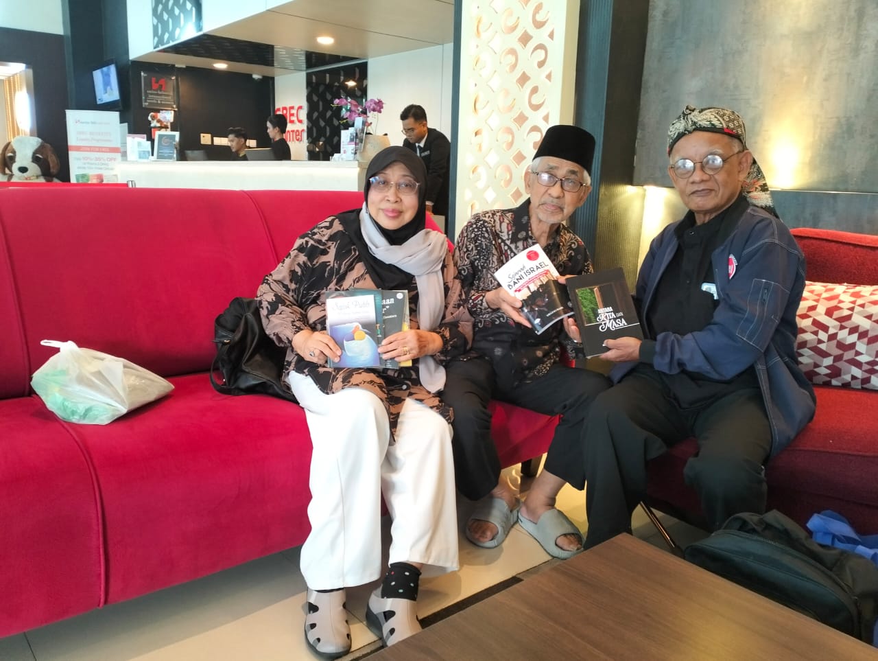 Begitulah, hari Rabu kemarin (7/4) saya sempatkan menemuinya di sebuah hotel di Malang. Beliau langsung mengeluarkan sebuah tas berisi oleh-oleh untuk saya, termasuk sebuah buku antologi puisi karyanya berjudul “Antara Kita dan Masa.” Suami Bu Noriah, Ghazali Basri, juga memberikan buku karyanya berjudul “Sejarah Bani Israel. Sebuah Kajian Perbandingan Menurut Perjanjian Lama dan al-Qur’an.” Abang Ghazali (demikian saya diminta Bu Noriah memanggilnya) memang pakar dalam bidang ilmu perbandingan agama.